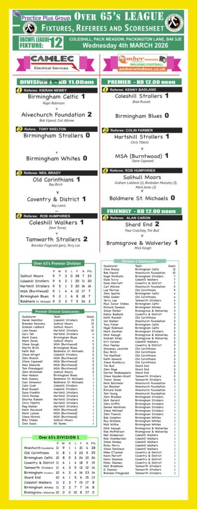 BIRMINGHAM LEAGUE OVER 65s | 04.03.2026